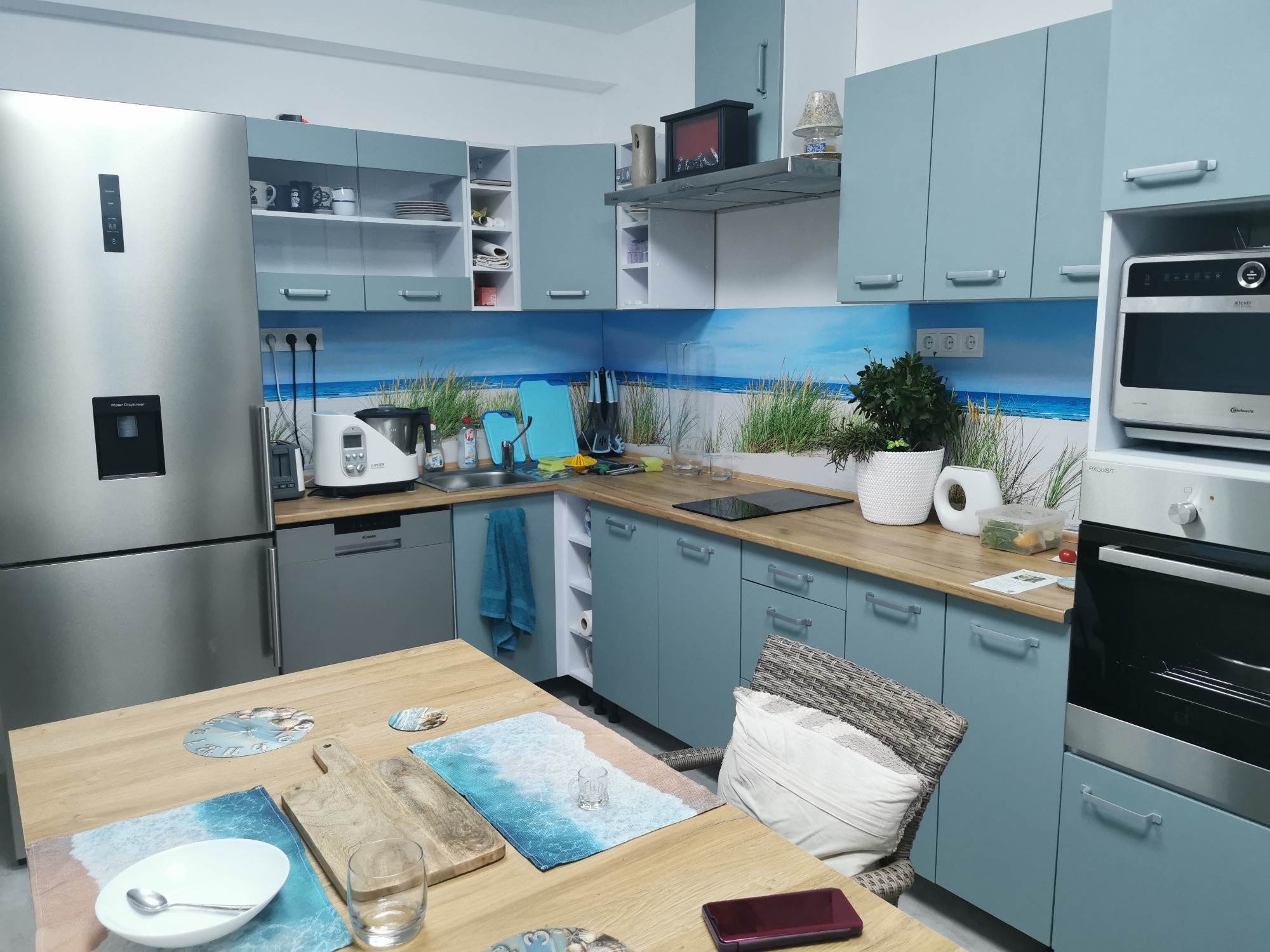 Direkt daneben befindet sich ein Aufenthaltsraum, in dem kleine Snacks und Erfrischungen für zwischendurch vorbereitet werden können.