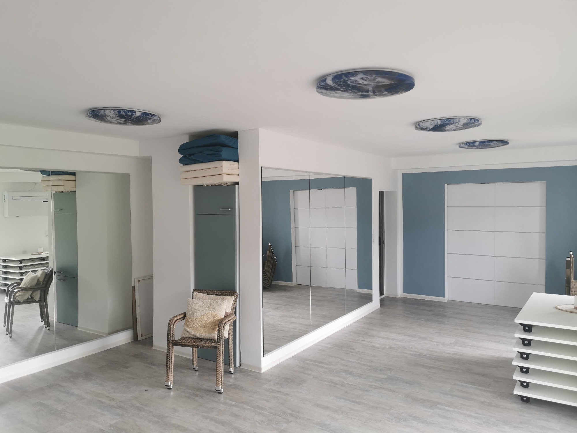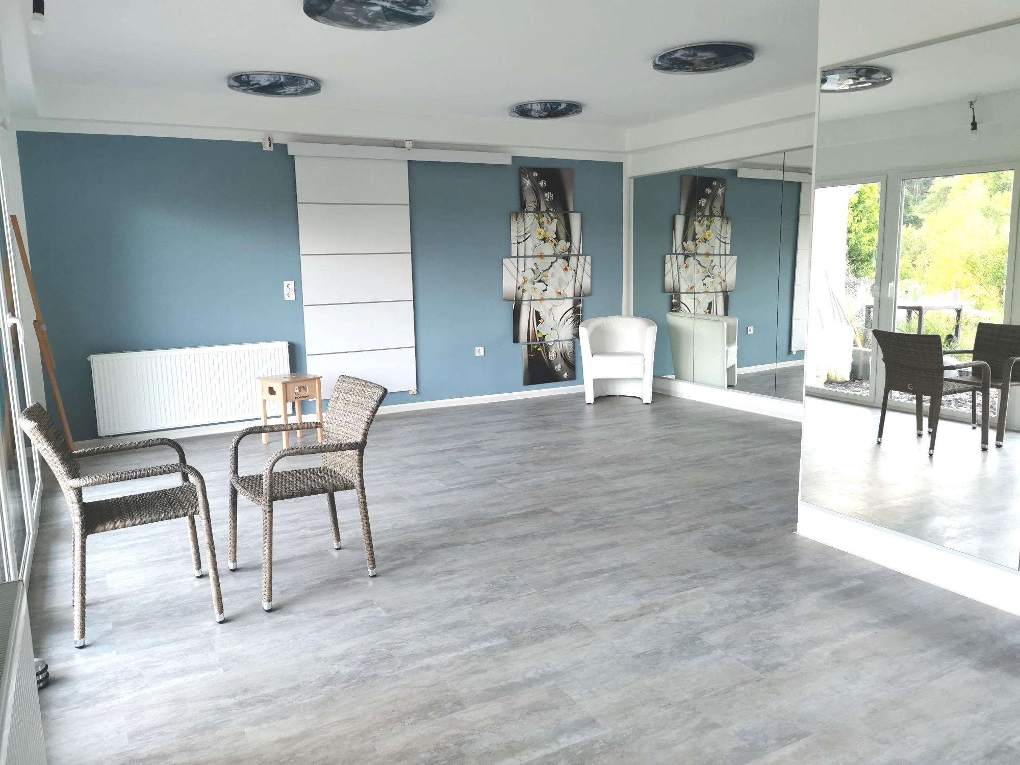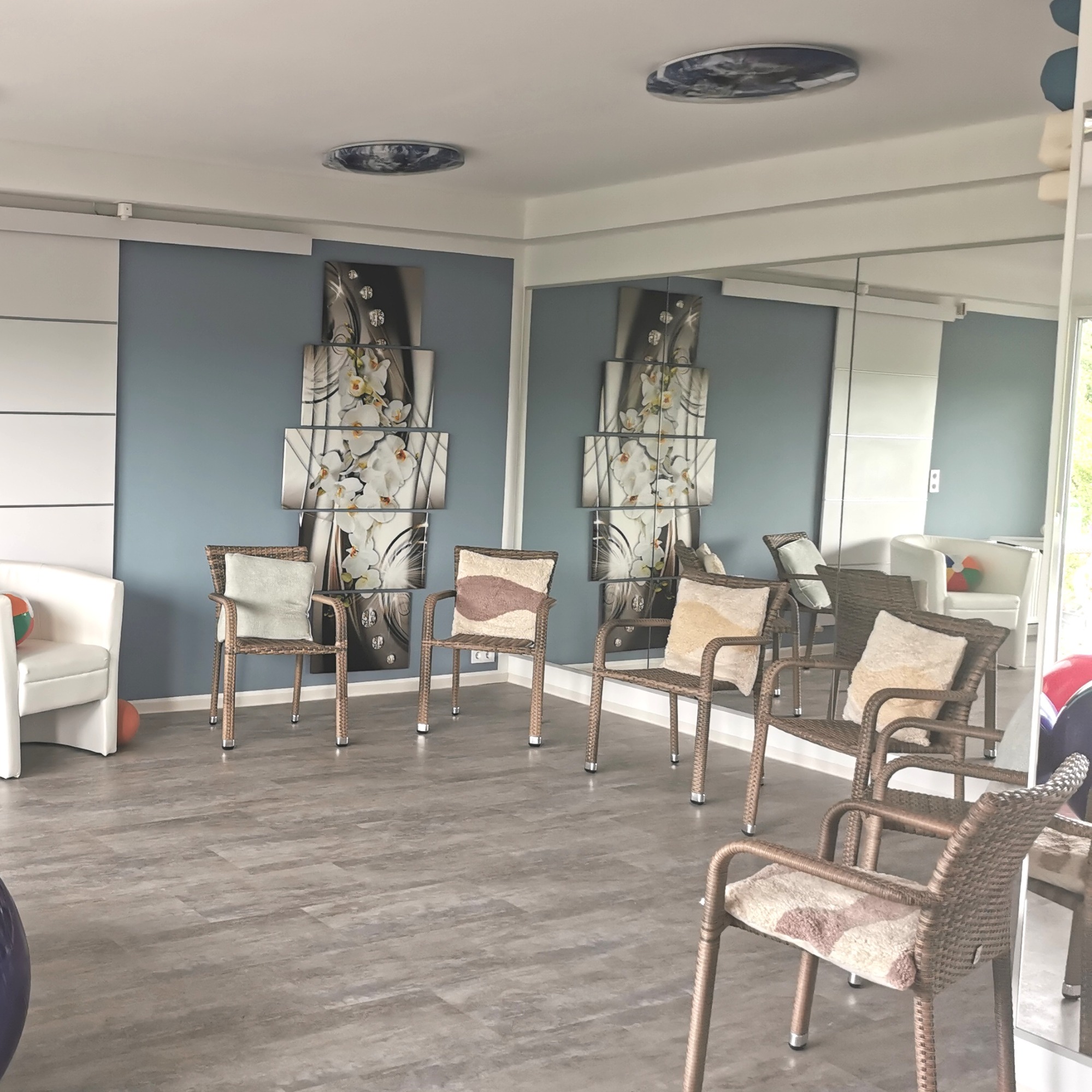 Unser Kursraum verfügt über zwei Spiegelwände.