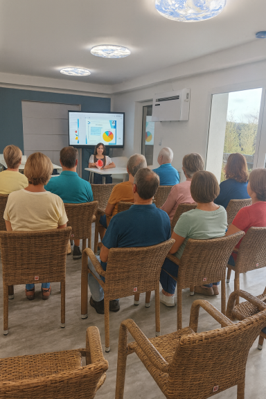 für Vorträge mit bis zu 30–36 Personen oder Seminare mit Tischen für 28–32 Teilnehmende.